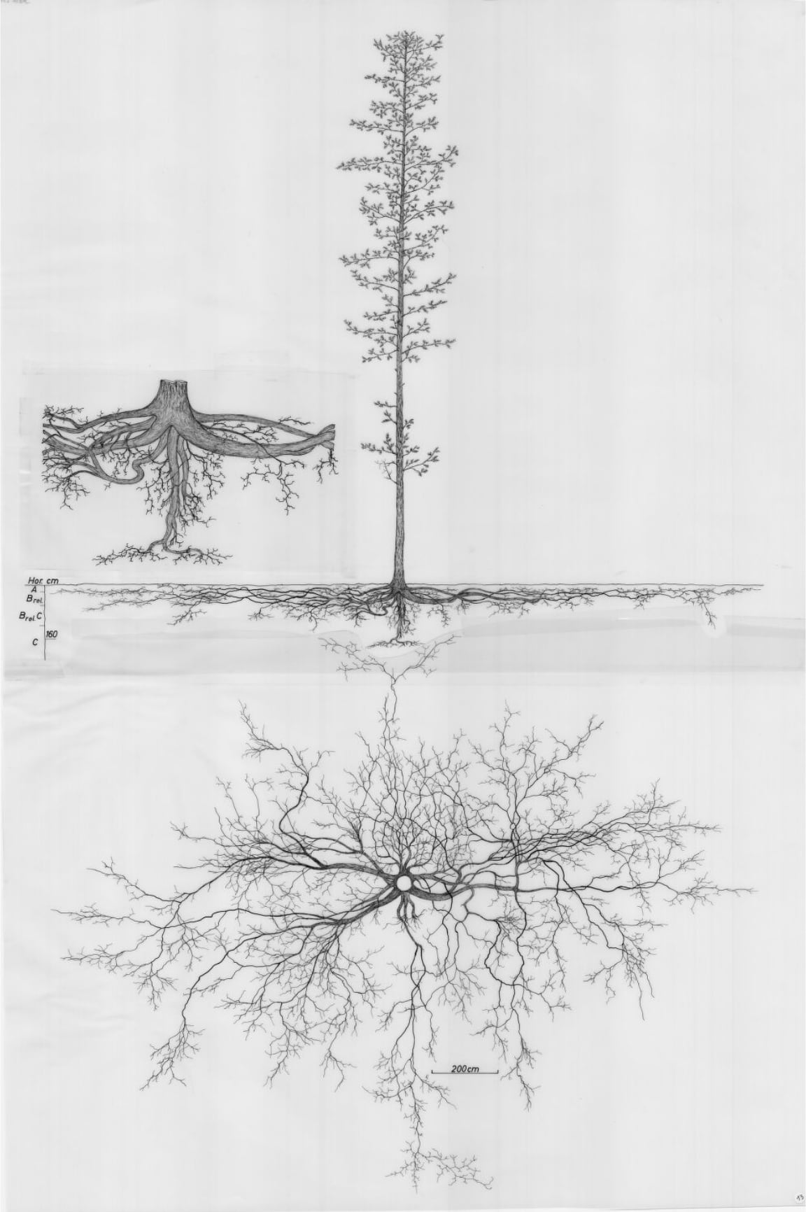 Pr. Erwin Lichtenegger, Pr. Lore Kutschera, Dessins d’observation de systèmes racinaires de plantes, 1180 diagrammes d’espèces, retraçant quarante ans de recherches botaniques, collection des Archives de l’Université de Wageningen (Pays-Bas) numérisée et ouverte au public [en ligne], https://images.wur.nl/digital/collection/coll13/search