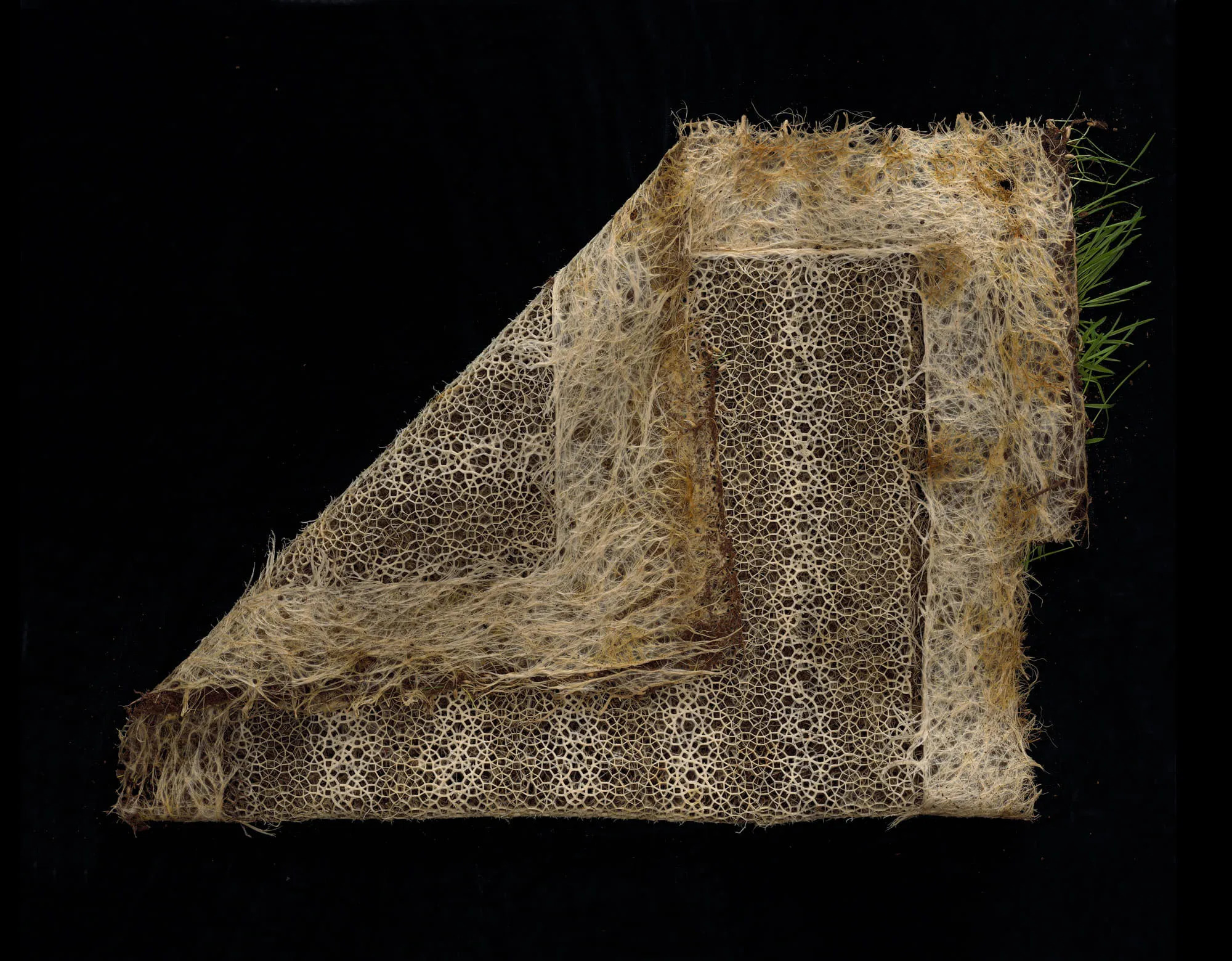 Diana Scherer, Exercises in Root System Domestication, 2015 – 2025, tissage de racines sur tapis de terre à partir de graines, exposé à la Biennale de Sydney en 2022, [en ligne], https://dianascherer.nl/