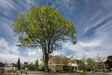 Olga Kisseleva, Biopresence, 2012, sculpture ouverte comportant un orme obtenu par croisement génétique entre l’orme local disparu de Biscarrosse et un orme de Sibérie, sur commande de la commune de Biscarrosse (Landes).